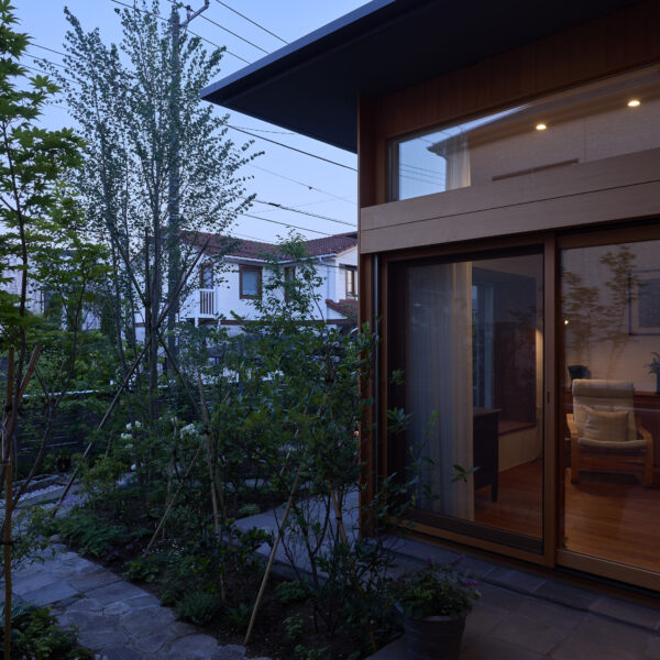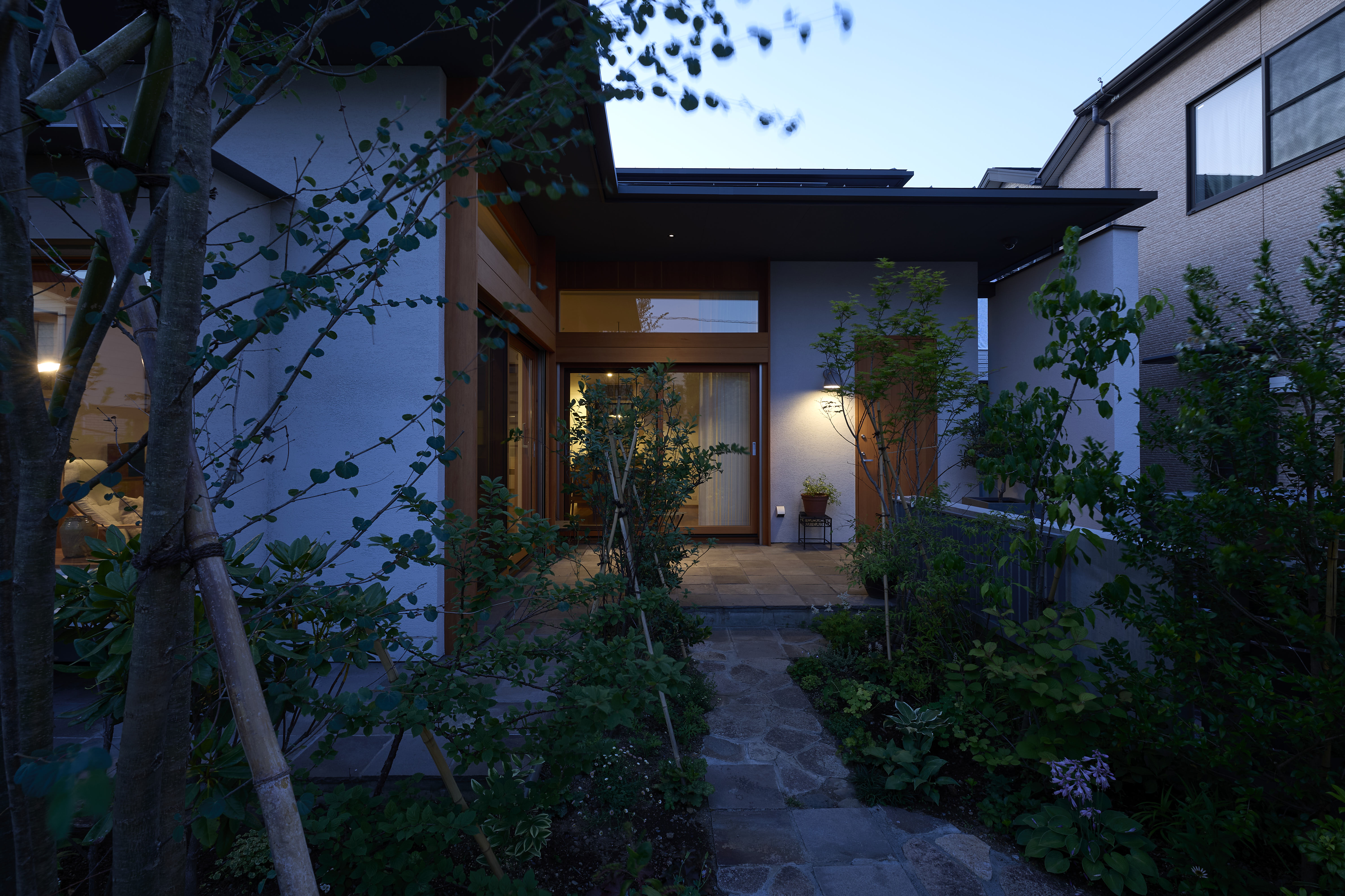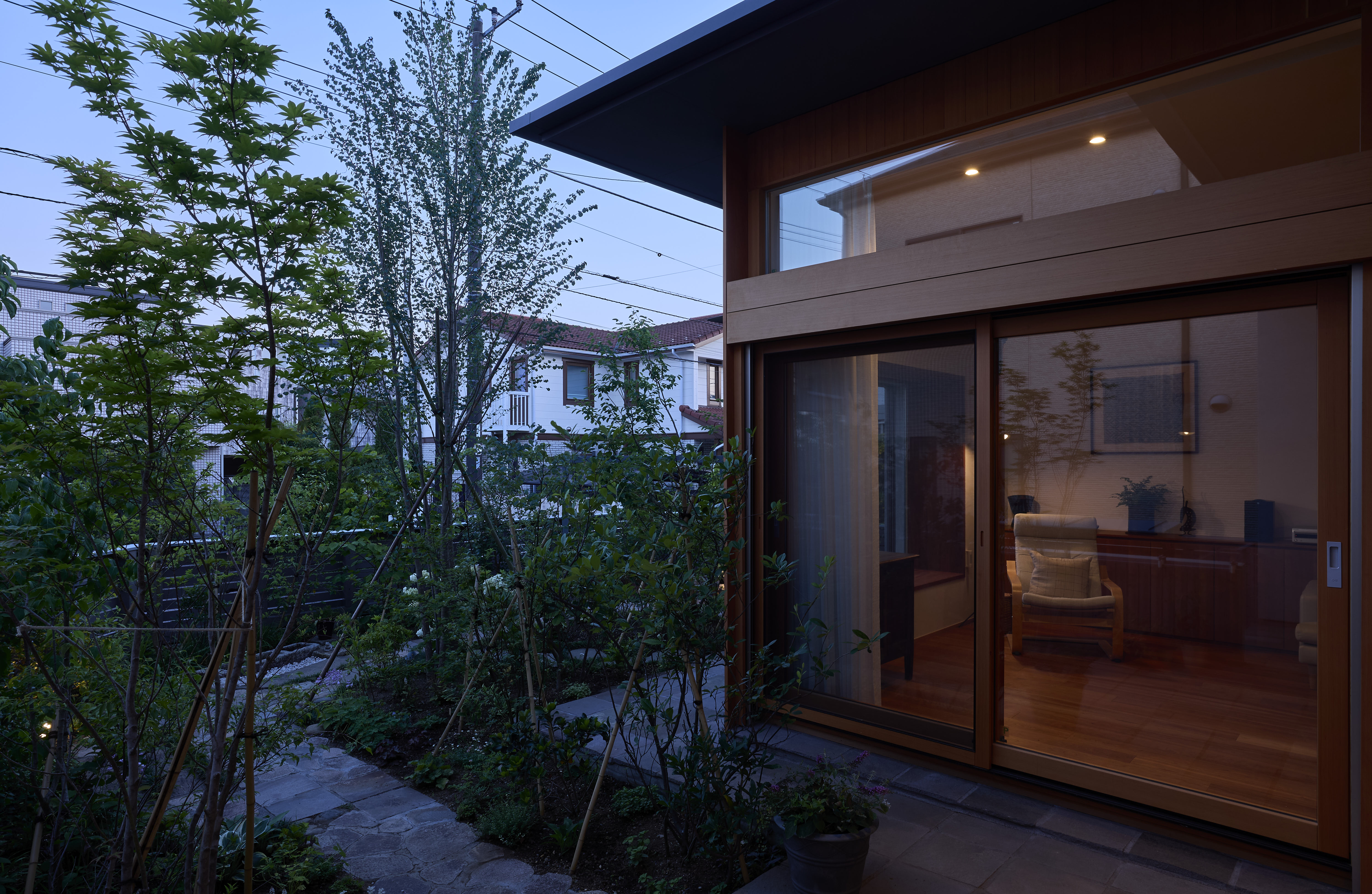 作品一覧東京郊外の文教都市。低層の住宅が並ぶ閑静な住宅街に建つ、ご家族3人+愛犬のための住まいです。建主夫妻が望まれた「本格的なシアタールームと、庭仕事や料理を楽しむ家」。近隣環境を丁寧に読み取り、建物の位置や規模、開口部を定めていきました。南北2面の道路に接するという敷地の特徴をいかして、南の玄関と北の車庫を玄関納戸でつなぎ、宅内を通り抜けられる計画としました。